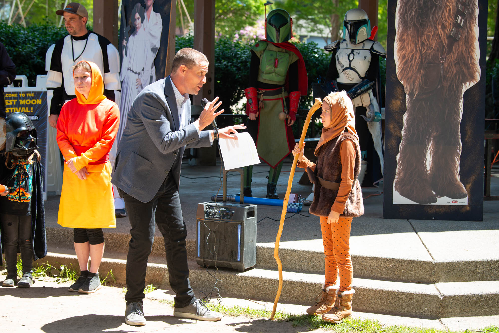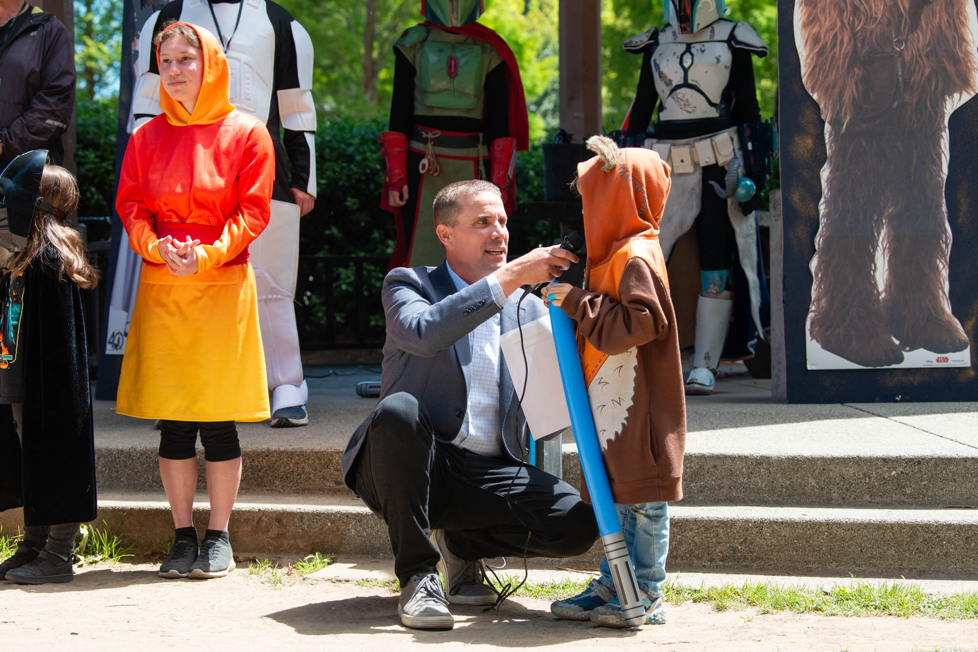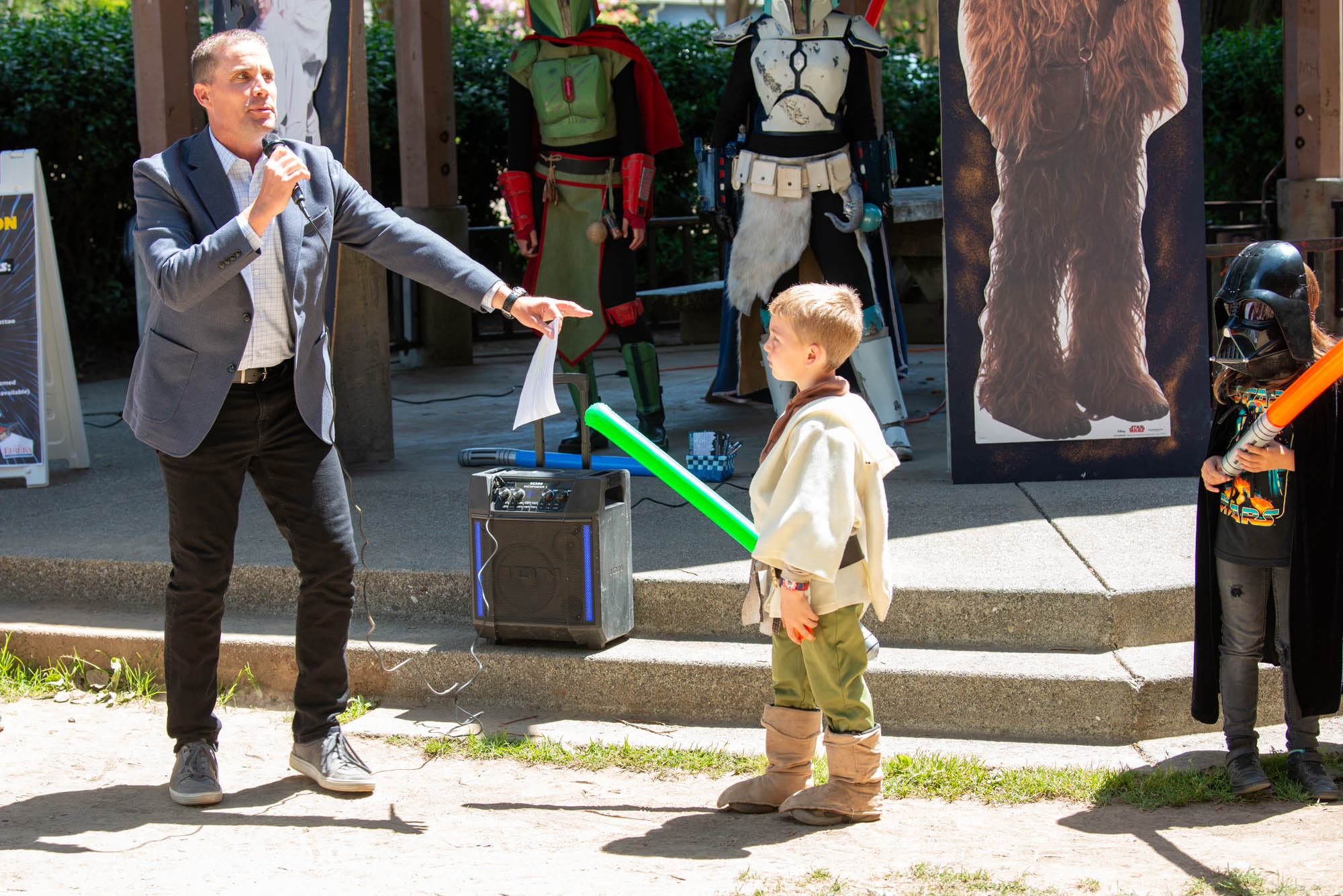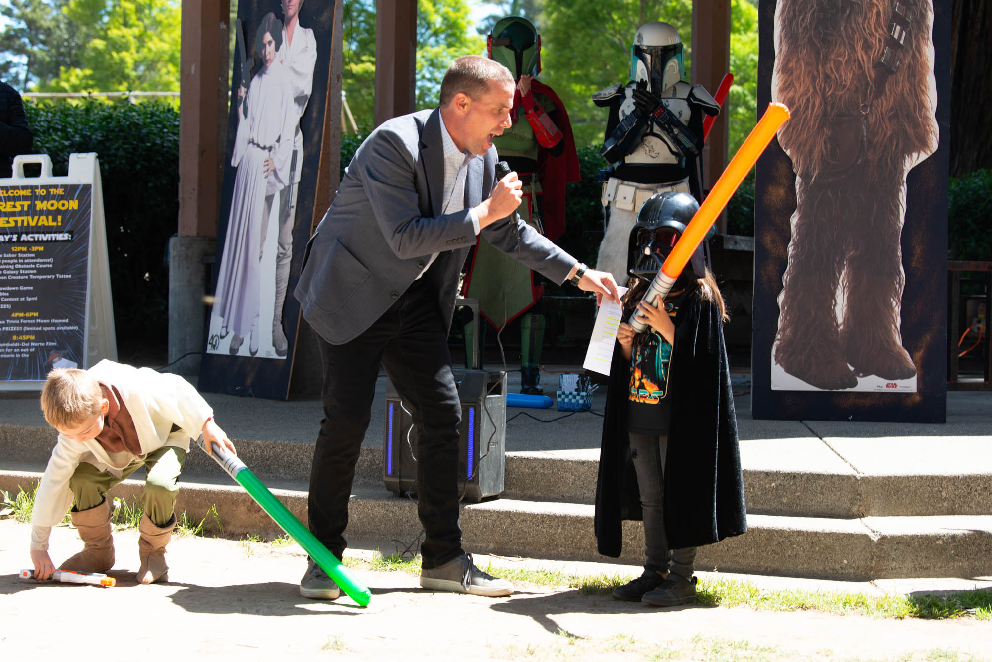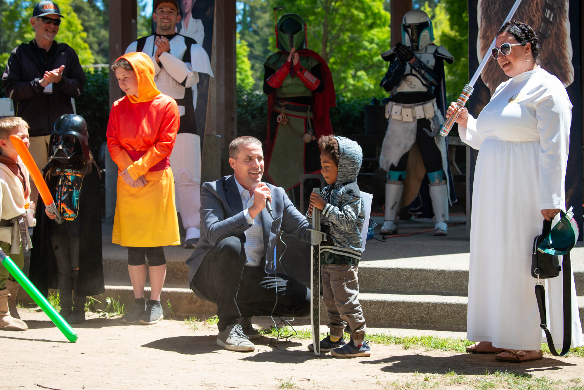 Featuring the marvelous talents of Costuming Groups from all across California, including The Rebel Legion, Endor Base; The Mandalorian Mercs, Teren Clan; The 501st Legion, Golden Gate Garrison; The Stormtrooper Ranch, The Bay Area Droid Builders, The Astromech Builders, And the athletic talents of The Saber Legion!